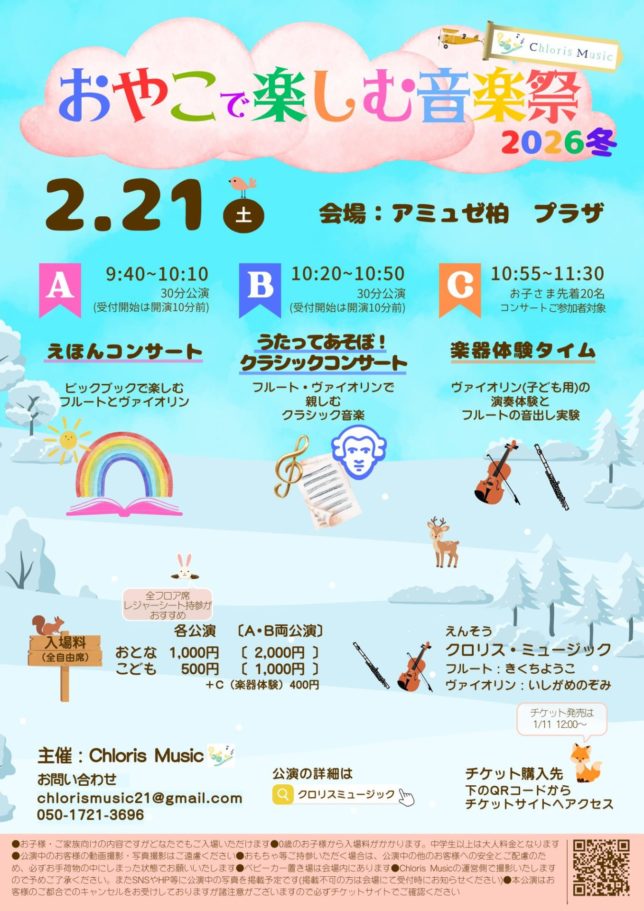 ・Chloris MusicのSNSやHP等に公演中の写真を掲載予定です(掲載不可の方は会場にて受付時にお知らせください)